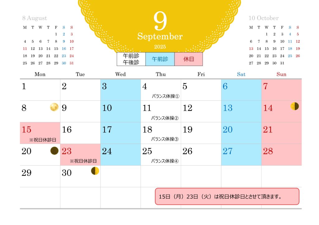 15日と23日は祝日の為に休診とさせて頂きます。